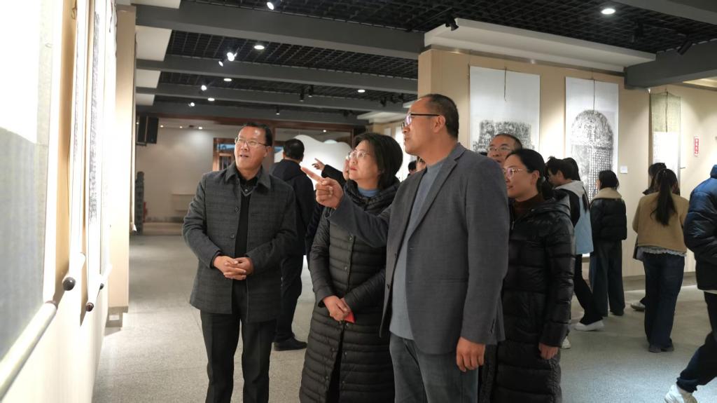 之后,全体参会人员共同前往展馆,近距离观赏本次展出的拓片作品。现场交流氛围热烈。