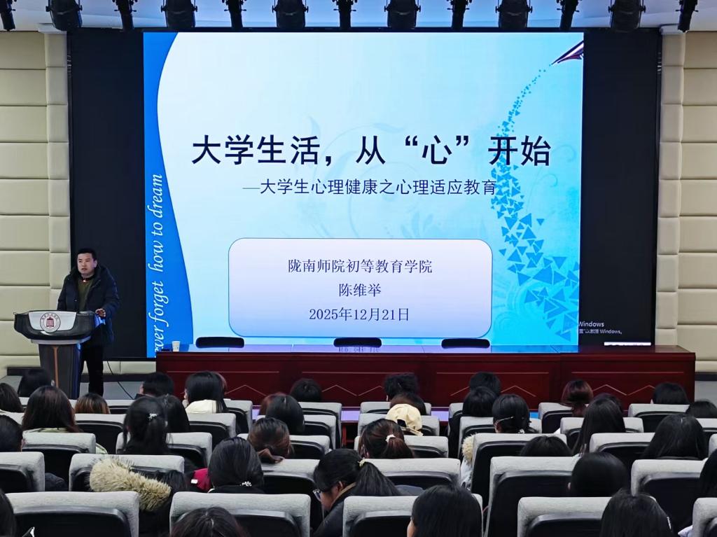 12月21日晚,我院邀请初等教育学院陈维举老师,举办了题为“大学生活,从‘心’开始”的心理健康讲座,我院100余名师生聆听了讲座。
