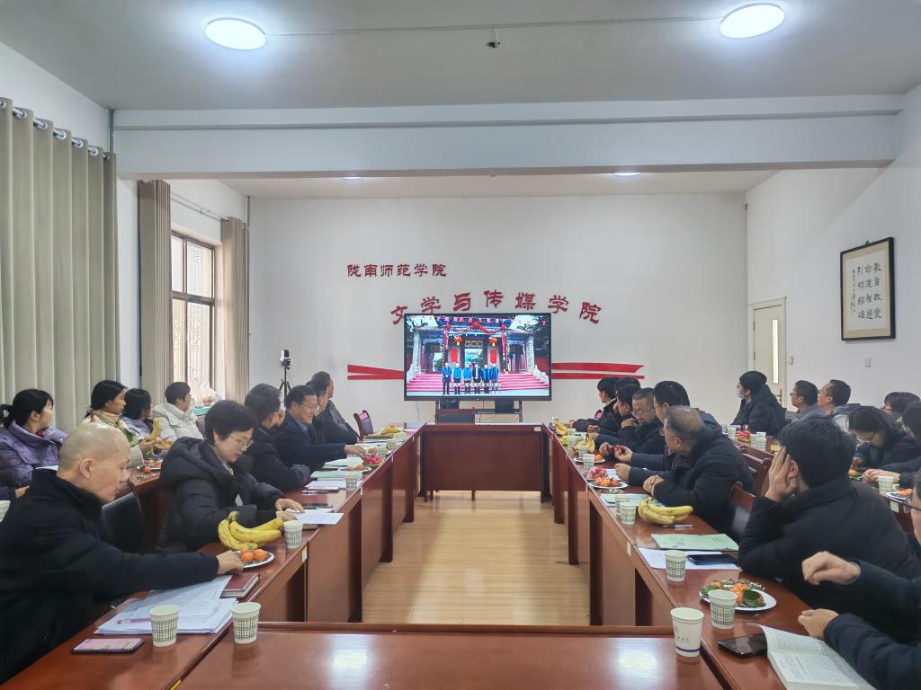 2026年1月4日下午,陇南师范学院文学与传媒学院推动学科建设工作座谈会在学院一楼会议室成功举行。会议围绕地域文化研究成果展示、学术考察汇报交流与未来学科发展部署三大核心内容展开,旨在凝聚共识、明确方向,深入推进以“陇蜀道文学与文化”为重点的学科建设与科研创新工作。科研外事处处长王瀚应邀出席,学院特聘教授蒲向明及全院教师与会。座谈会由学院党总支副书记关薇主持。